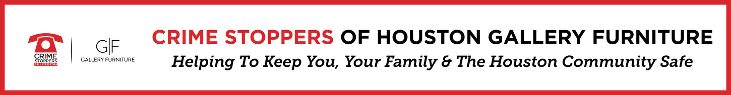 Crime Stoppers of Houston es la principal organización sin ánimo de lucro de Houston dedicada a la seguridad pública y desde 1980 ha mantenido su compromiso con su misión de resolver y prevenir delitos graves en el área metropolitana de Houston en colaboración con los ciudadanos, los medios de comunicación y el sistema de justicia penal. La asociación entre Crime Stoppers of Houston y Gallery Furniture tiene como objetivo llegar a un mayor número de ciudadanos de Houston para que juntos podamos maximizar nuestro impacto en la seguridad personal de los residentes del área de Houston y la prevención de la delincuencia en la comunidad de Houston.
