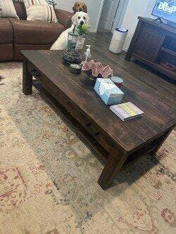Aporta calidez y calidad duradera a tu salón con este conjunto de mesa de 3 piezas de madera maciza fabricado en Amish. Fabricado en los EE.UU., este conjunto incluye una espaciosa mesa de cóctel y dos mesas auxiliares versátiles, cada uno con acabados rústicos, cajones de almacenamiento práctico y estantes inferiores resistentes.