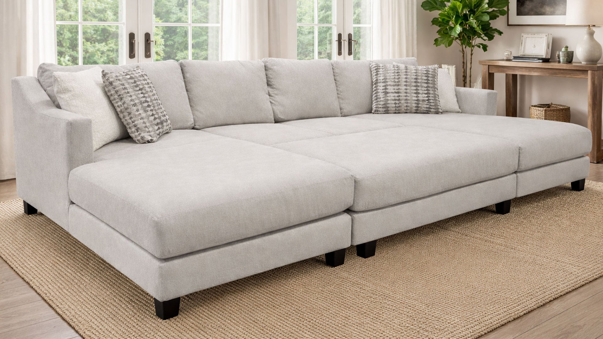 Seccional y otomana Vibe Fog de 3 piezas - Seccional contemporáneo extragrande - Gris claro - Fabricado en Houston