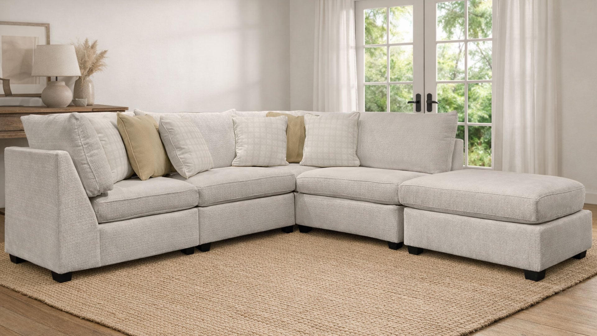 Seccional modular de 4 piezas con otomana a juego.