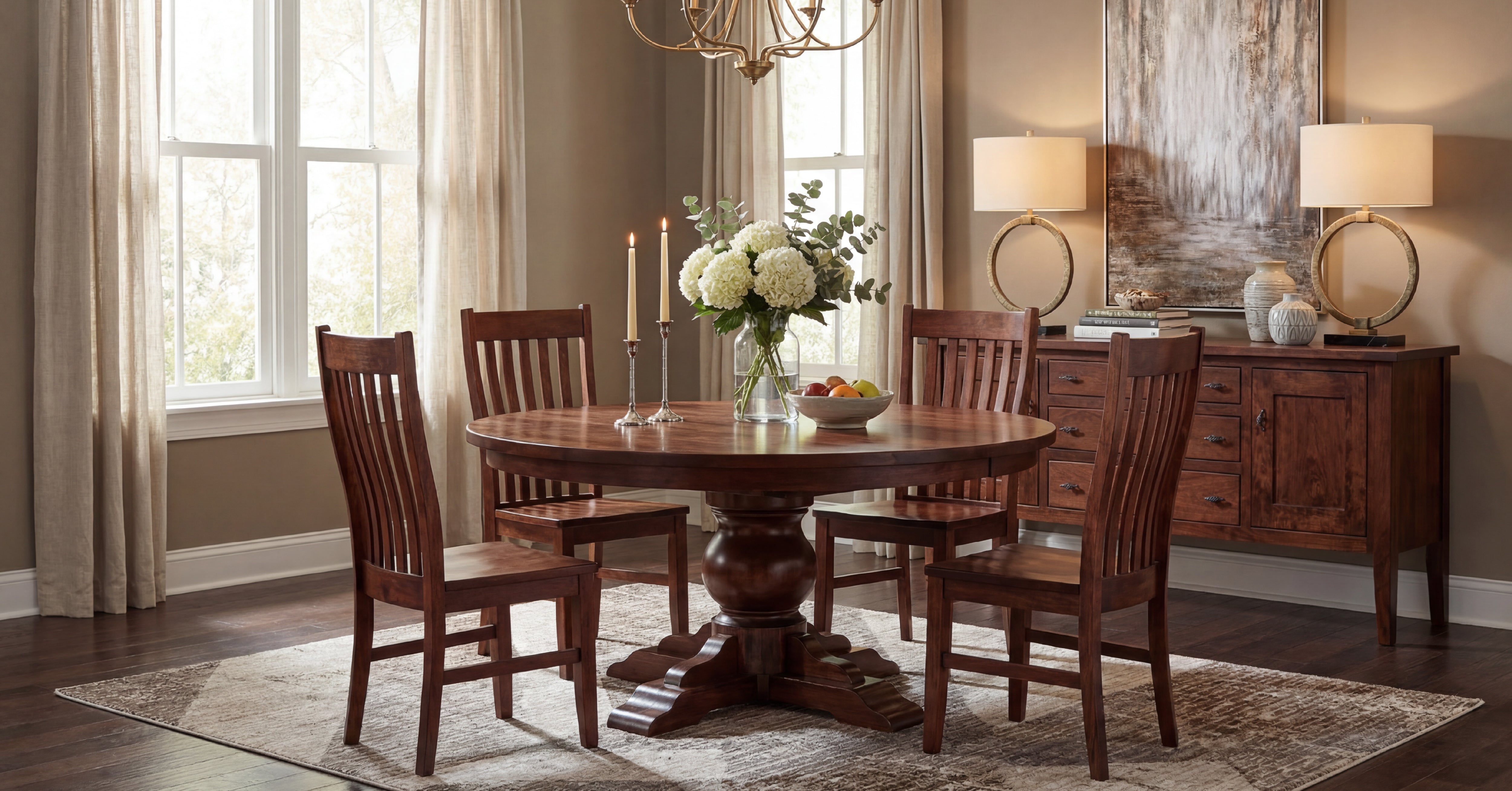 Mesa de comedor redonda rústica con pedestal de cerezo de 60 pulgadas de San Gabriel