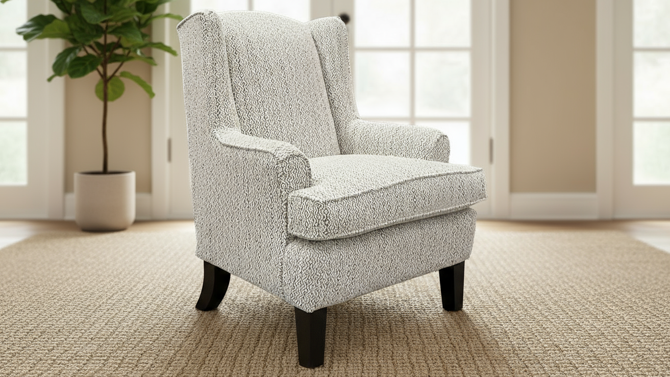 Esta elegante silla de acento combina el estilo atemporal con la comodidad cotidiana, con una silueta clásica wingback, brazos curvos y tapicería con textura, perfecto para salas de estar o dormitorios.