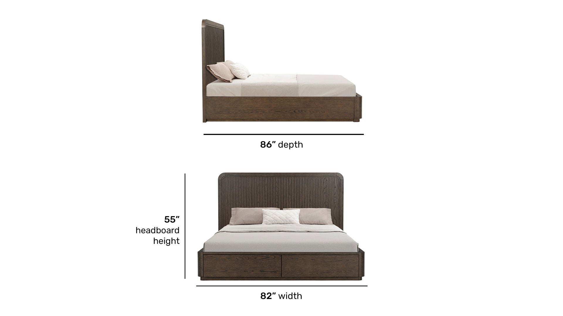 Cama king size: 55" de alto × 82" de ancho × 86" de profundidad
