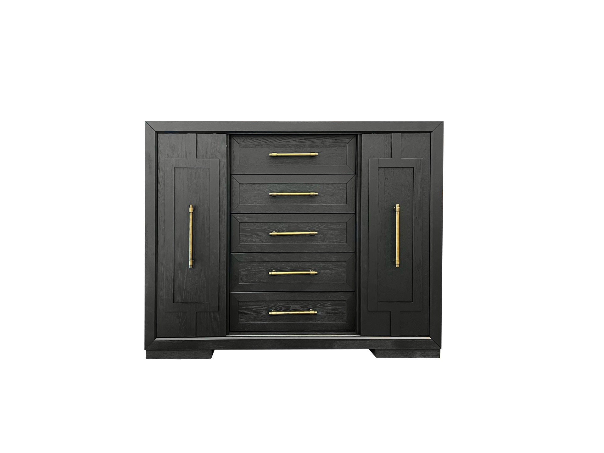 La cómoda de caballero Bellaire es una pieza sofisticada y funcional diseñada para realzar cualquier dormitorio con su elegancia atemporal. Con herrajes de latón antiguo, esta cómoda desprende un encanto clásico. Las dos puertas correderas se abren para revelar espaciosos estantes, perfectos para guardar ropa doblada o accesorios. Además, la cómoda incluye cinco cajones forrados, que proporcionan un amplio espacio con almacenamiento para sus pertenencias. El cajón inferior tiene un diseño exclusivo con fondo de cedro, que ofrece protección natural para sus objetos delicados.