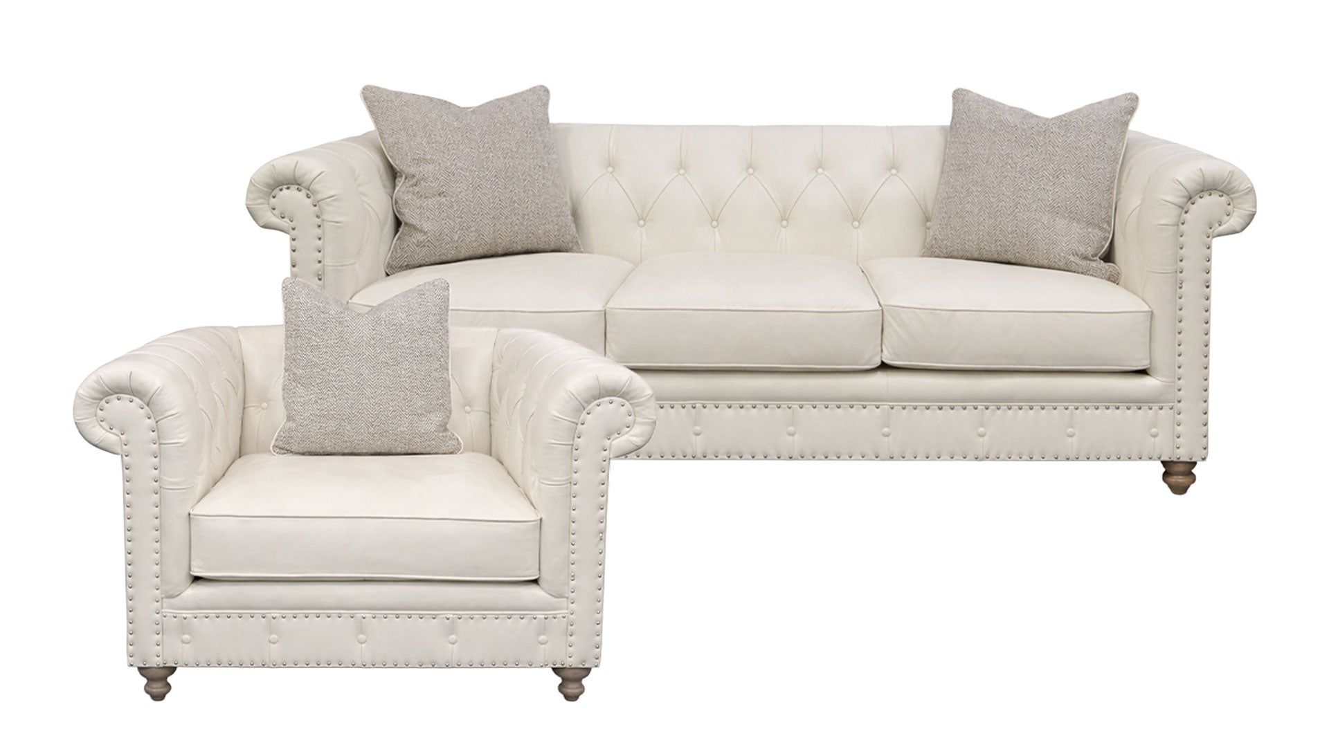 Conjunto de sofá y sillón de cuero «Bernhardt London Club» – Conjunto de salón capitoné | Gallery Furniture