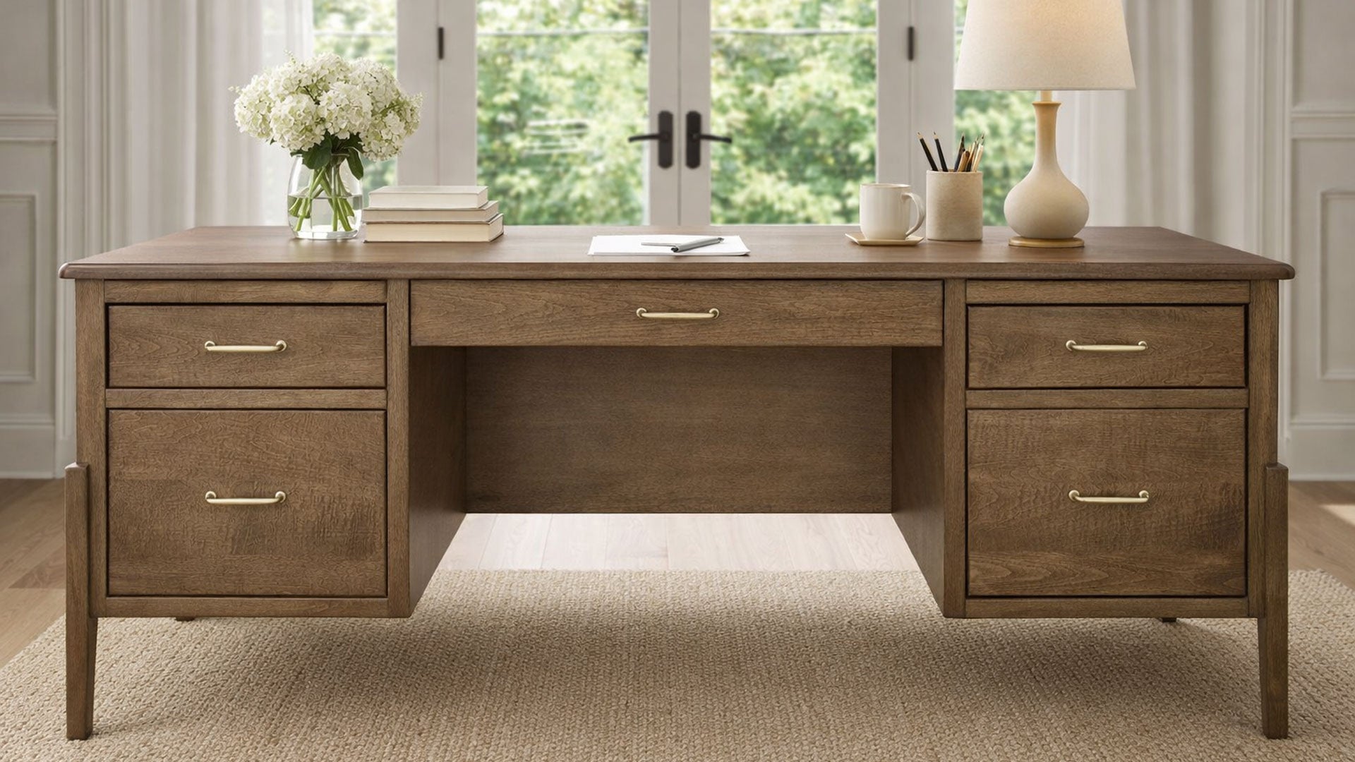 - Madera de arce americano de primera calidad, ecológica y sostenible, procedente de bosques estadounidenses: el escritorio Century Office Desk está fabricado con madera de arce de primera calidad, obtenida de forma sostenible de bosques gestionados de manera responsable.