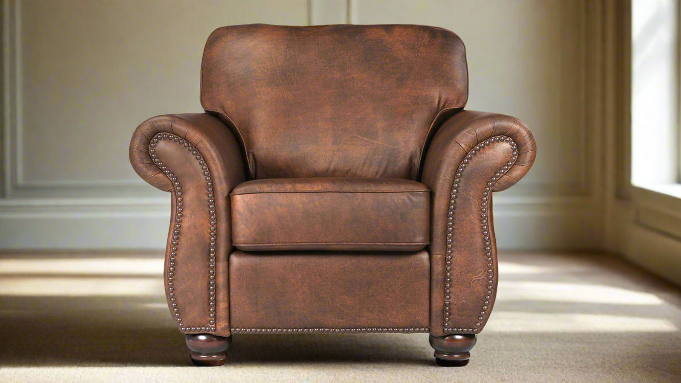 Esta silla 100% de piel, fabricada con orgullo en EE.UU., ofrece la mezcla perfecta de comodidad y estilo clásico. Con brazos enrollados, adornos de tachuelas y un asiento de apoyo, es una pieza destacada ya sea por sí solo o emparejado con muebles a juego. Disponible ahora con entrega en el mismo día en Gallery Furniture.