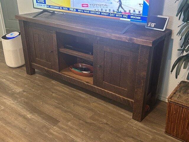 La rica madera de arce marrón cuenta con un acabado suave, aplicado a mano, acentuando los patrones de grano único para una mirada única en su tipo. Su diseño versátil complementa a la perfección interiores modernos, rústicos y tradicionales, por lo que es la pieza central perfecta para su sala de estar o espacio de entretenimiento.