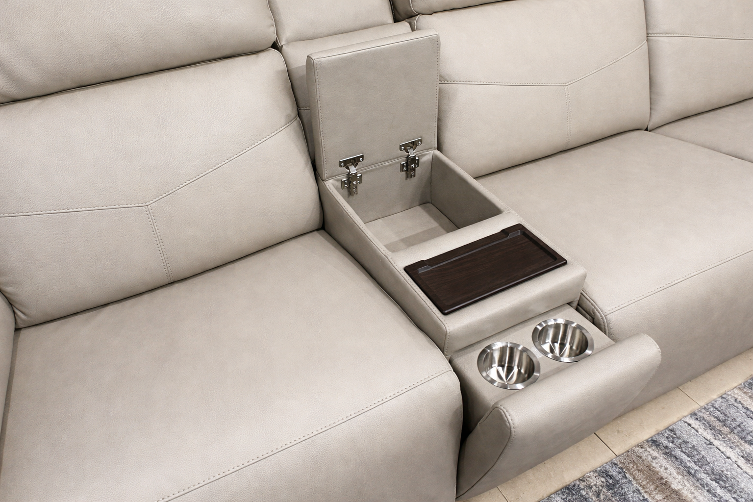 - Portavasos ocultos: Mantenga sus bebidas al alcance de la mano con discretos portavasos en los reposabrazos.
