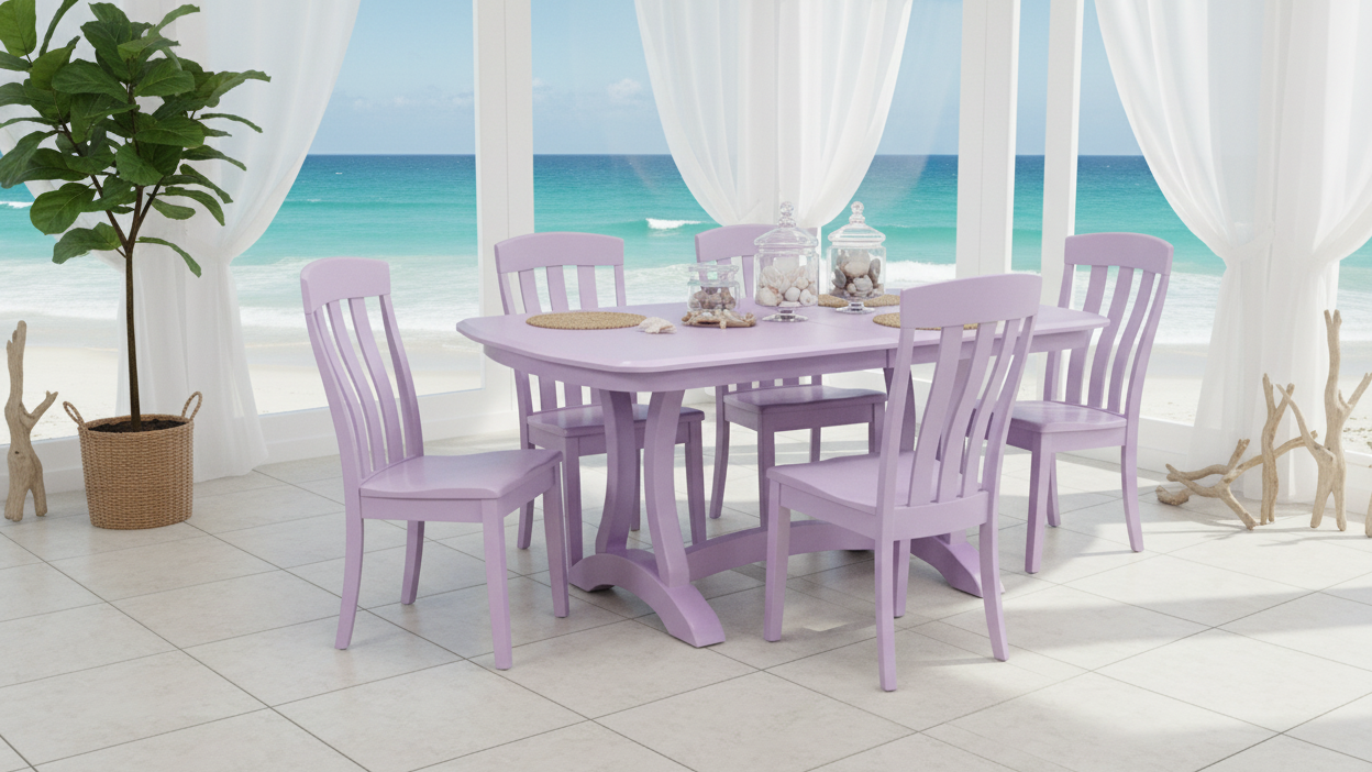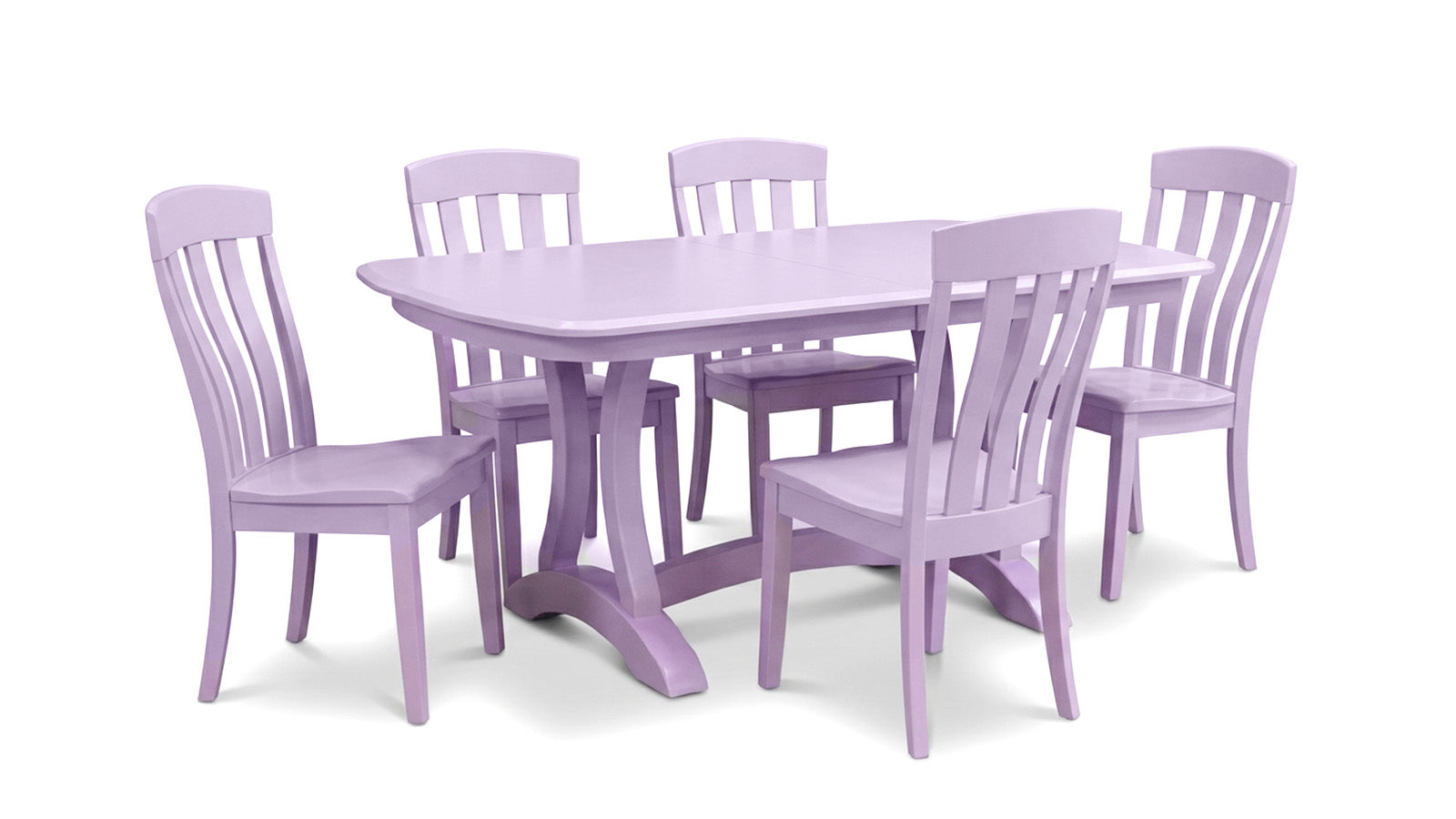 Mesa de madera maciza rosa y 6 sillas de la colección Free Spirit