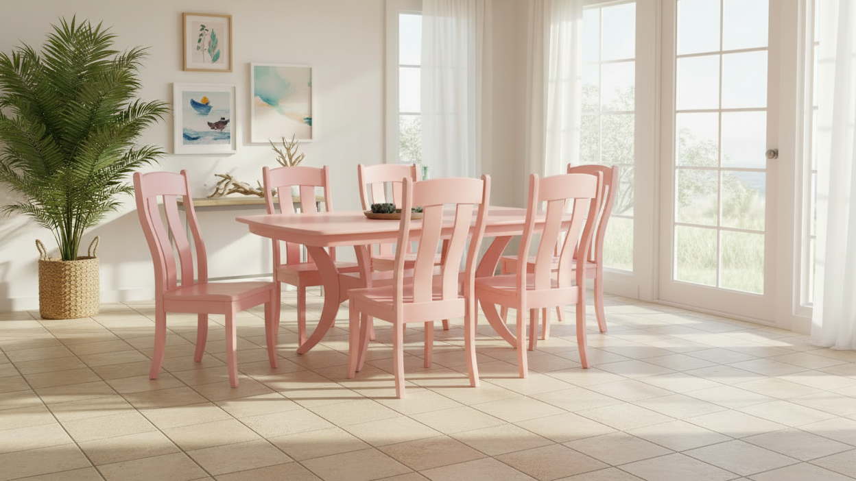 Mesa de madera maciza Galveston Coral y 6 sillas