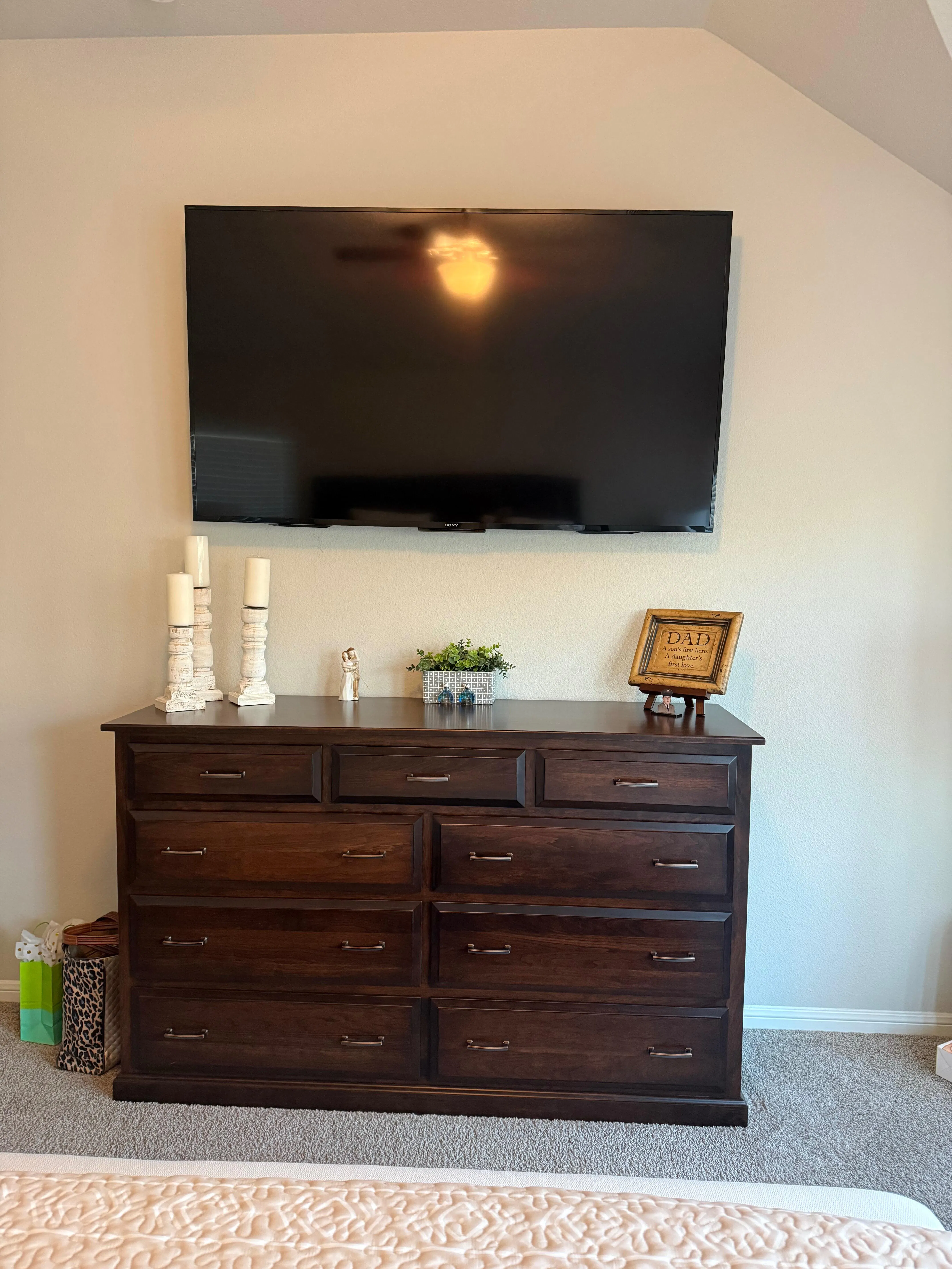 Esta impresionante cómoda de madera sólida muestra la mejor madera de cultivo estadounidense y la artesanía local. Fabricada con técnicas artesanales, es un mueble con calidad de reliquia que puede pasar de generación en generación.