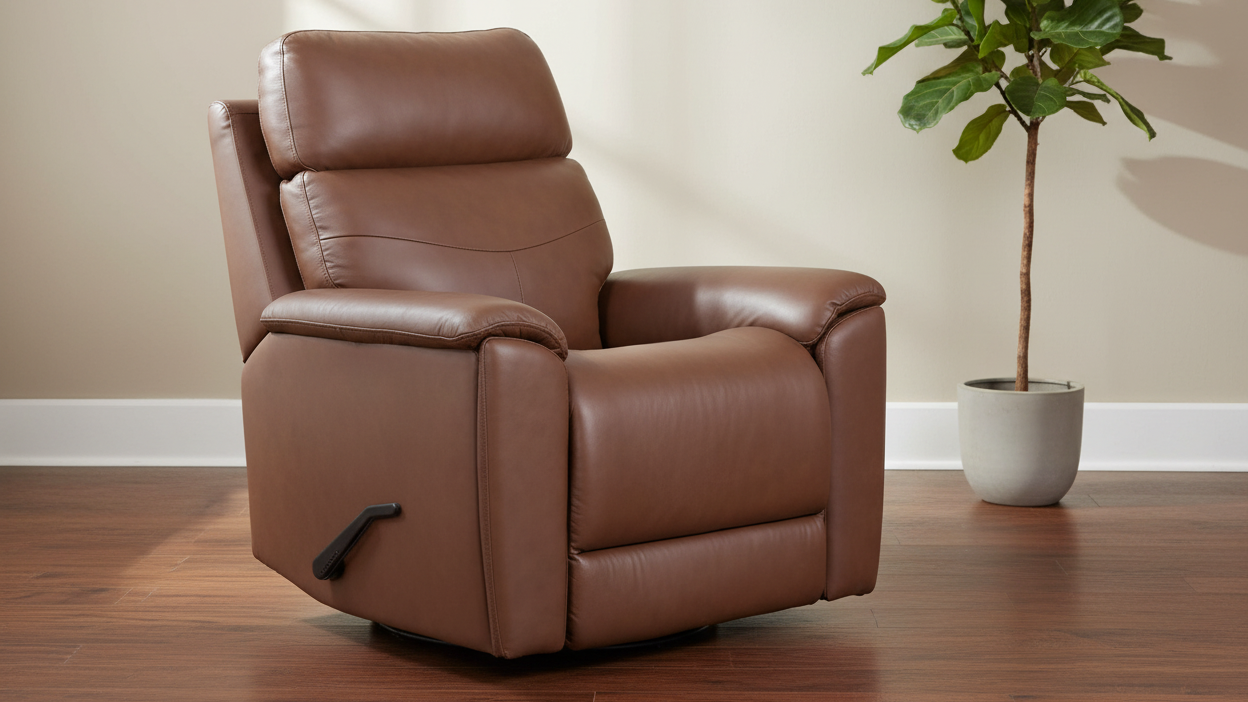 Sillón reclinable giratorio manual de cuero marrón refinado Hickory, combinación perfecta