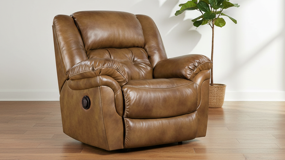 Sillón reclinable mecedora Hopeful de cuero marrón silla de montar P1 Power