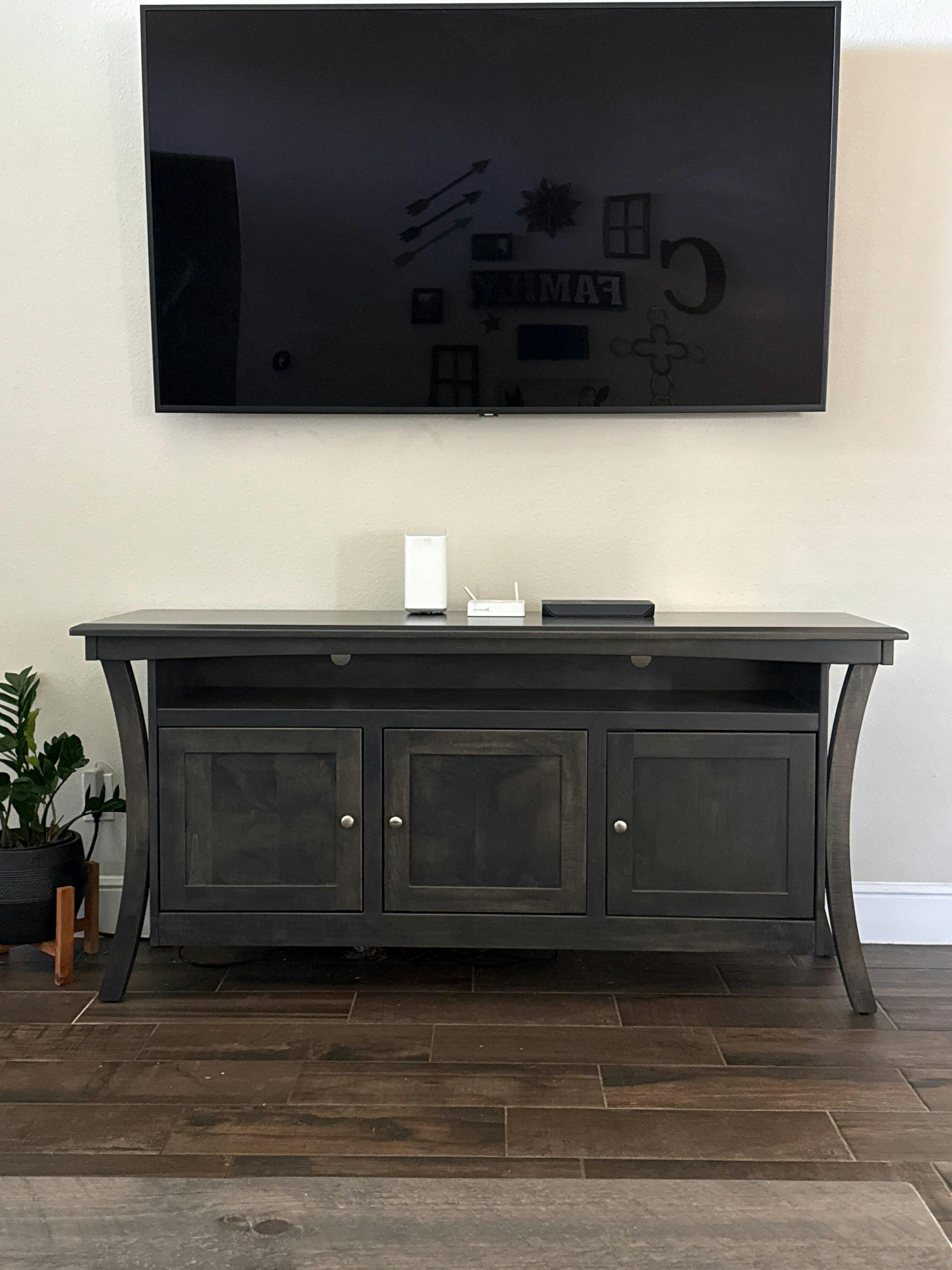 Consola para Tv Kyle 72" de madera sólida. Hecho en América con 3 Puertas para Almacenamiento Conveniente