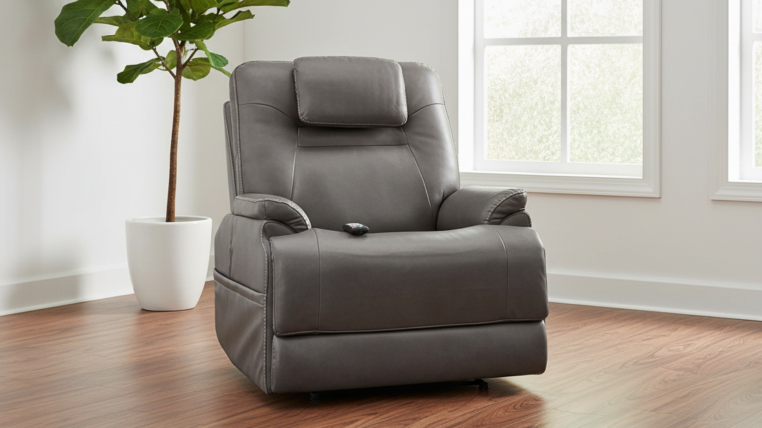 Sillón reclinable eléctrico con elevador MacZcliner gris oscuro P5 | Gallery Furniture