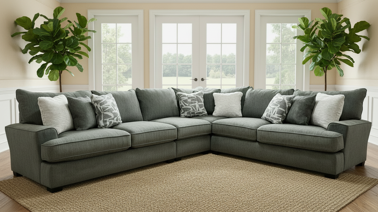 - Seccional de diseño moderno: Líneas elegantes y limpias y una distribución espaciosa perfecta para salones grandes o abiertos.