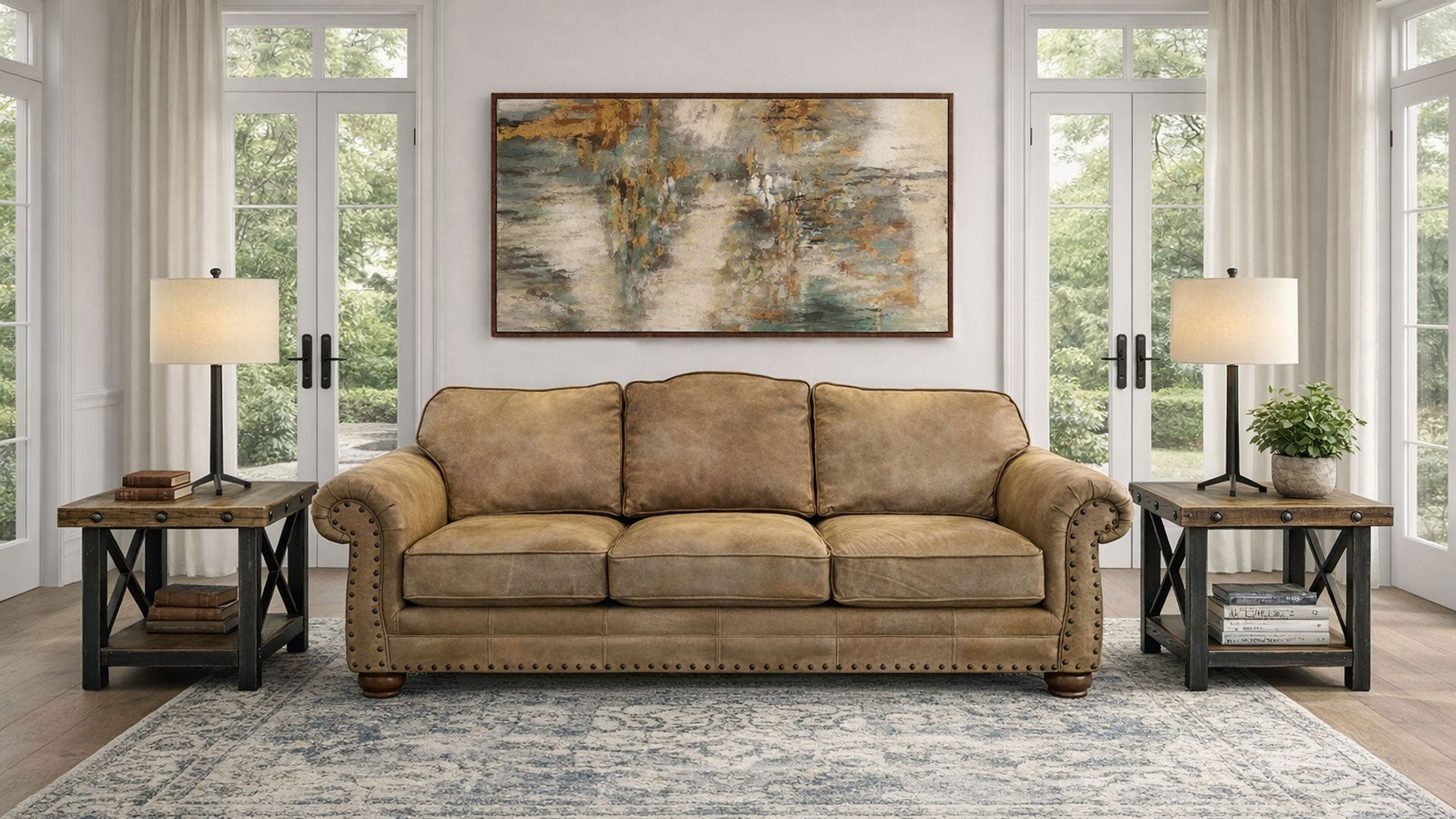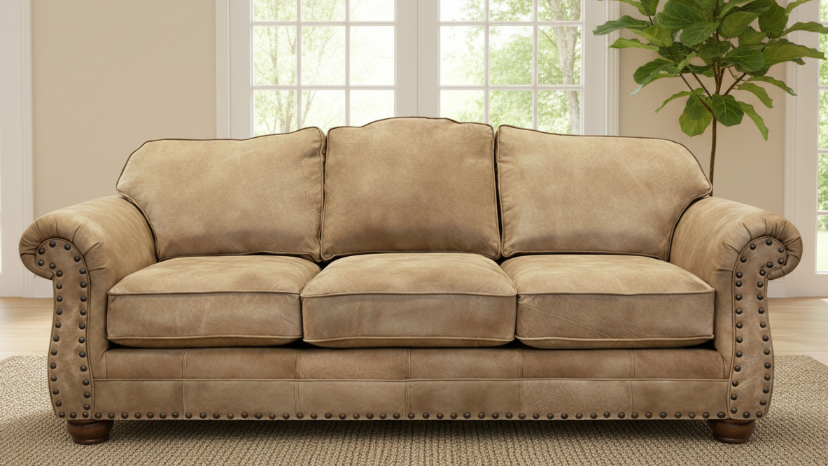 Sofá de cuero Open Range Broken Stone - 96" de grano superior fabricado en Estados Unidos