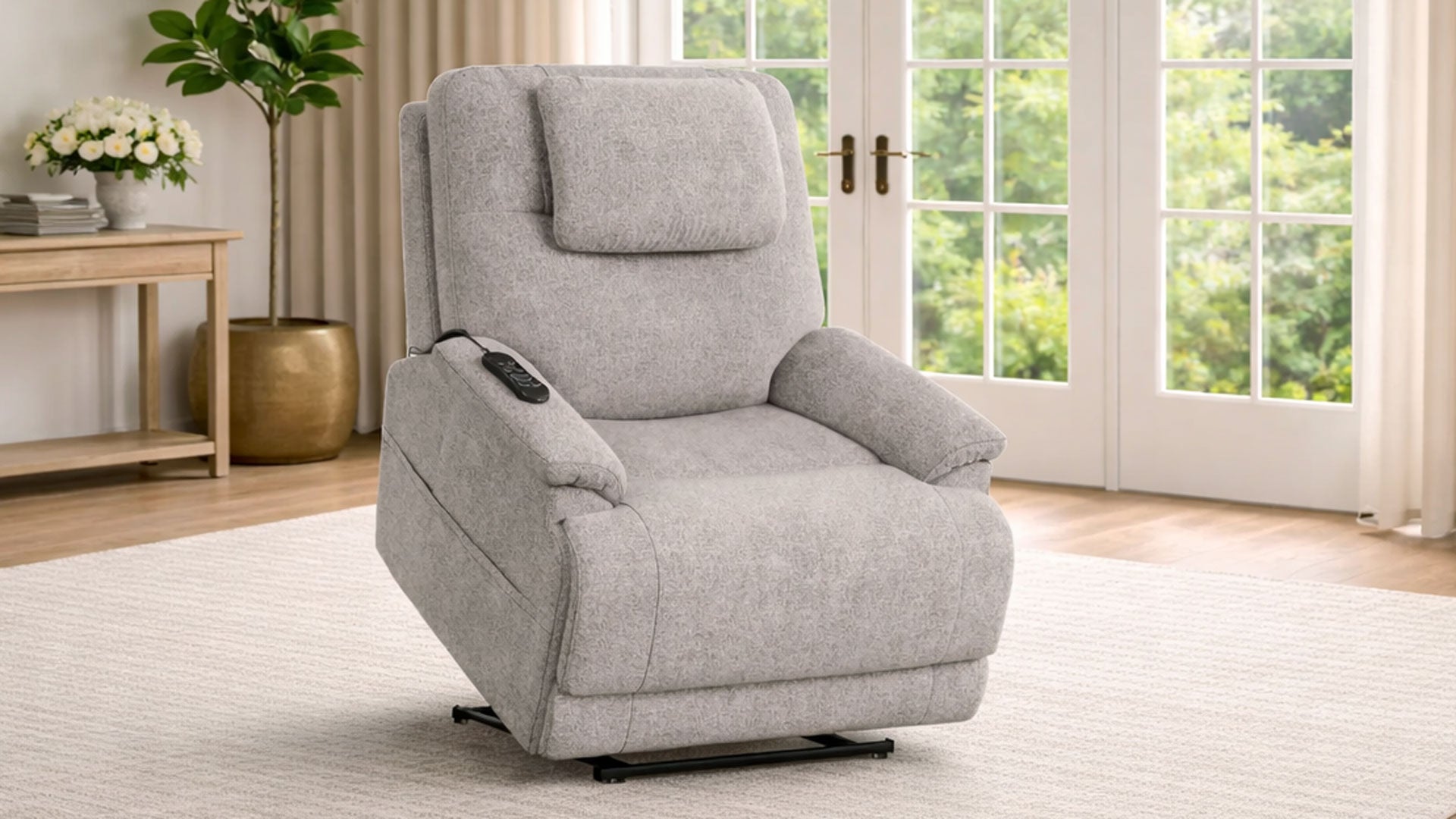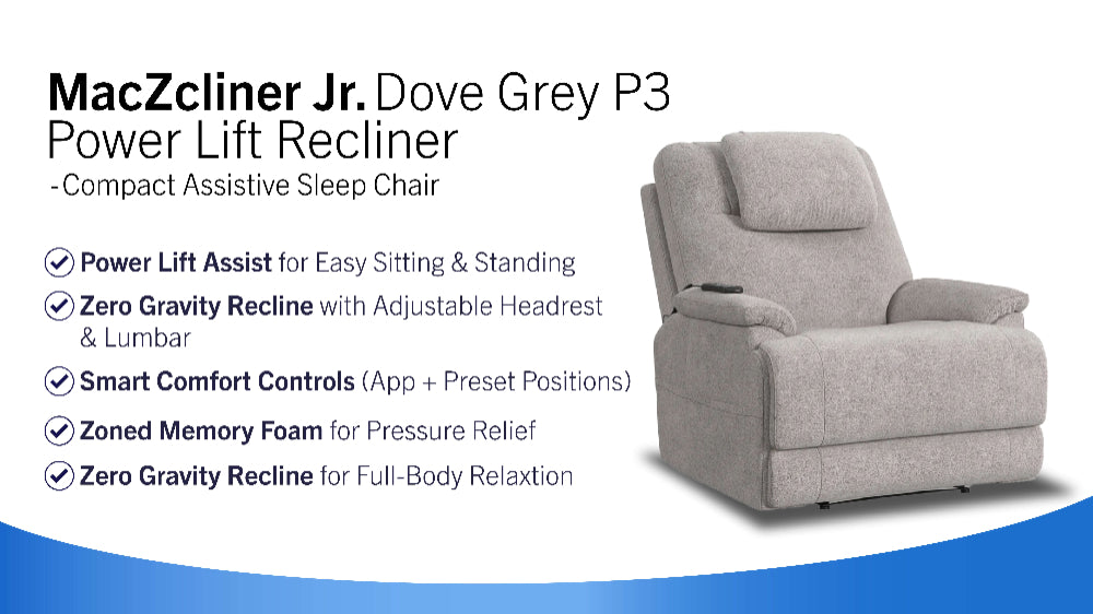 MacZcliner Jr. Sillón reclinable con elevador eléctrico P3 en color gris paloma - Sillón compacto de asistencia para dormir