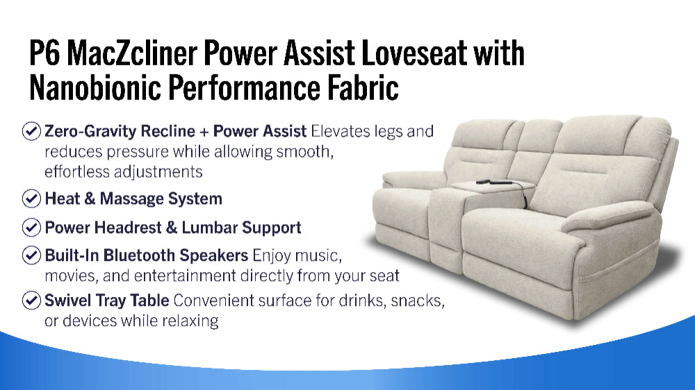 Sofá de dos plazas reclinable con asistencia eléctrica MacZcliner – Sofá de dos plazas para dormir con tejido de alta calidad | Gallery Furniture