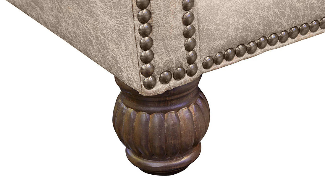 - Cabezas de clavo de níquel alineadas en la parte superior, inferior y brazos