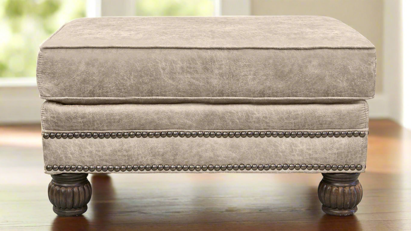 Levante los pies en la otomano Palance Marble Hoonah y déjese llevar por la comodidad Made in America. ¡Esta tapicería de microfibra es del color perfecto para adaptarse a su decoración, una textura elegante le da una capa extra de relajación, y el marco sólido le apoyará durante años! ¡Apoya a los artesanos de Texas en Gallery Furniture HOY MISMO!
