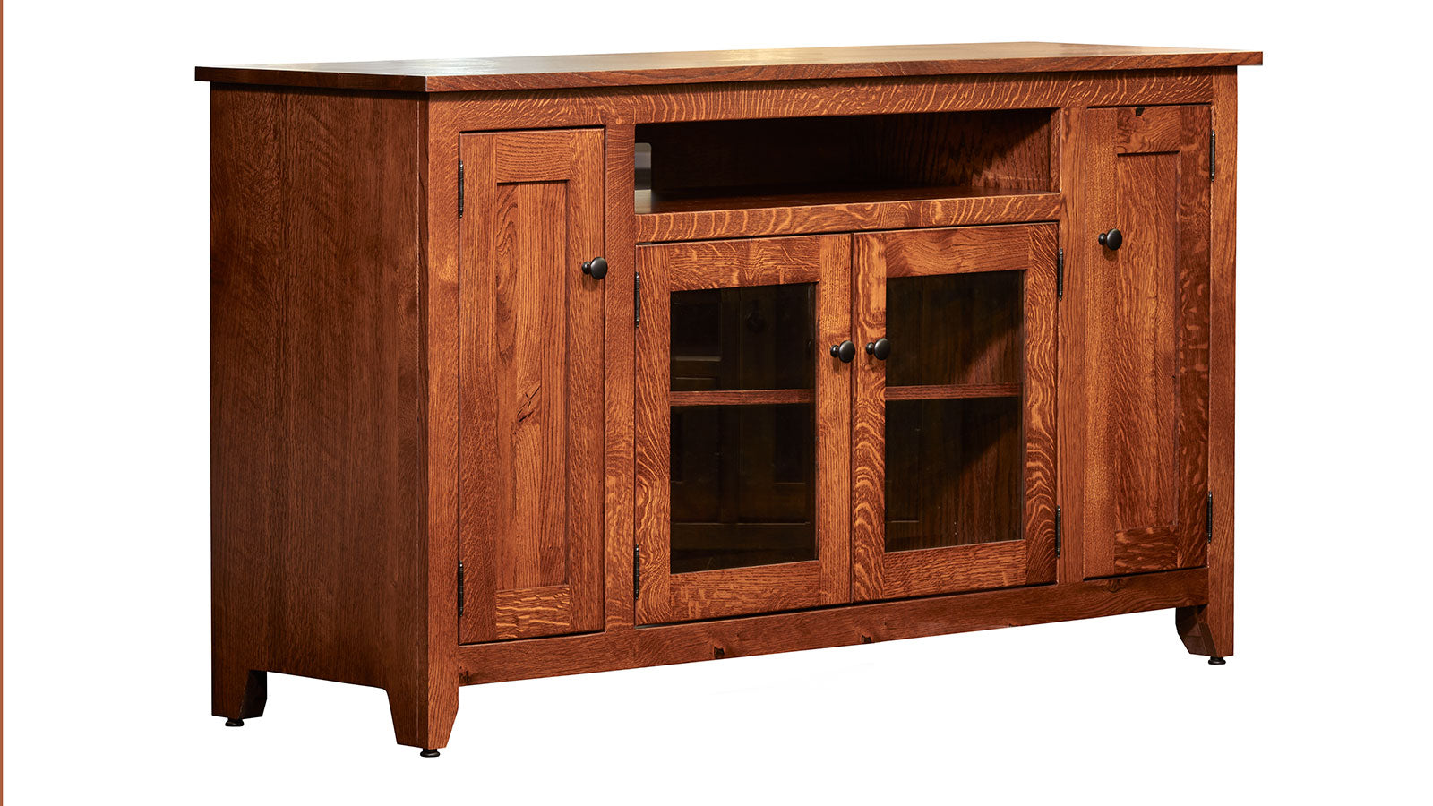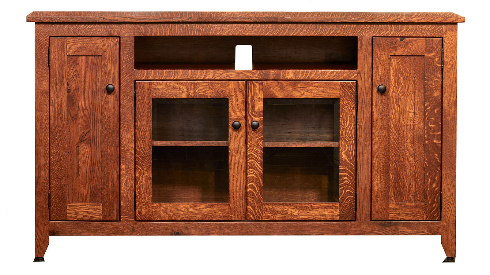 ¡Crea la sala de entretenimiento definitiva con la consola para televisor Rustic American de 60 pulgadas! La zona central abierta ofrece espacio para colocar cómodamente consolas, barras de sonido y similares, mientras que las 4 puertas ofrecen espacio para guardar dispositivos electrónicos adicionales, películas, juegos y mucho más. ¡El frente de cristal de las puertas y los herrajes de los tiradores aportan ese hermoso estilo rústico a tu sala de entretenimiento sin esfuerzo! ¡Esta sólida pieza está expertamente elaborada para mejorar tu hogar de por vida!