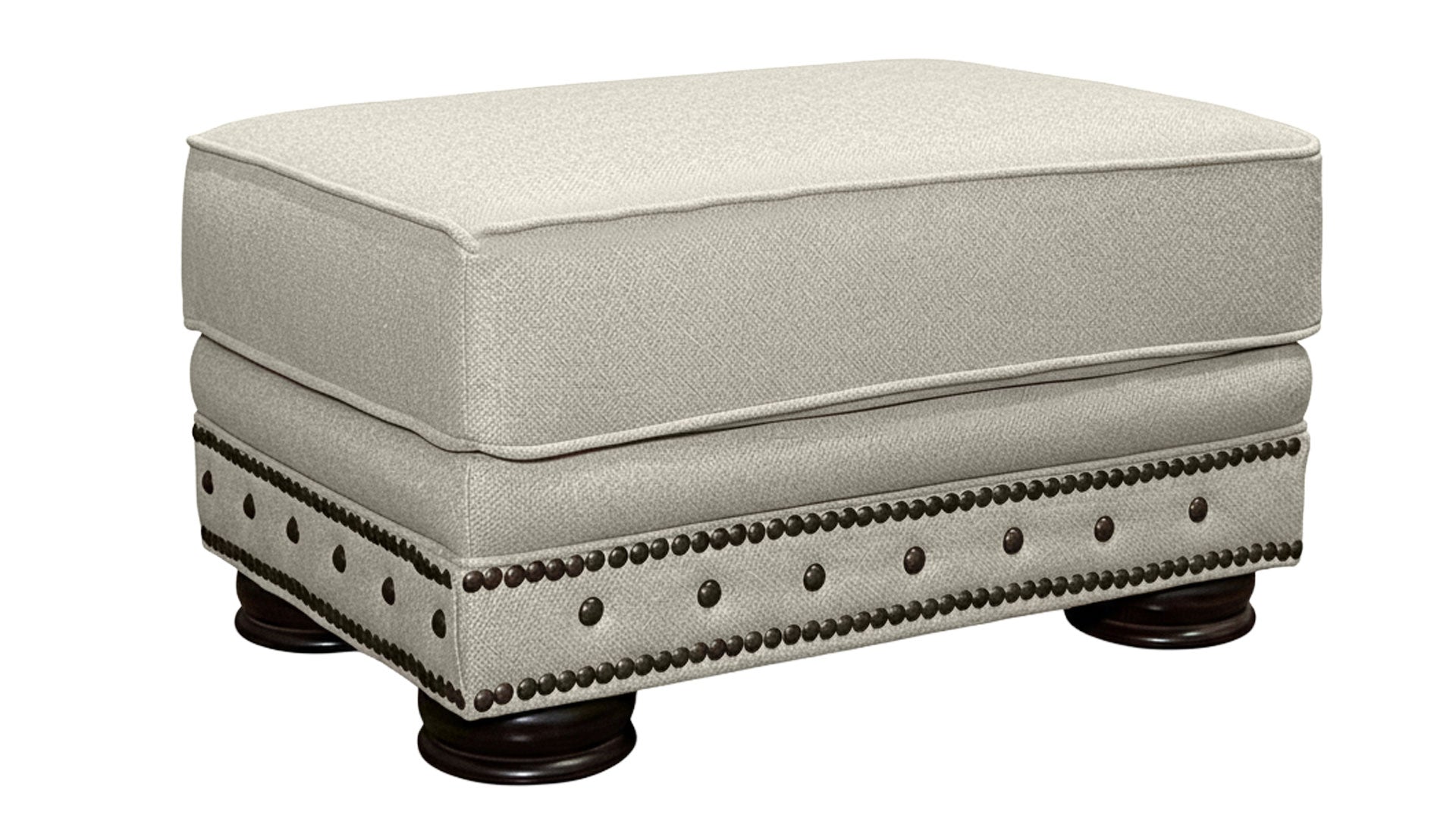 Esta otomana Made in USA completa la comodidad del sofá, el loveseat y la silla a juego. Tapizada en tejido Macton Performance, es resistente a las manchas, repele la humedad y es fácil de limpiar, ideal para hogares con niños, mascotas y para el uso diario. El cojín generosamente acolchado proporciona un apoyo relajado para las piernas y un asiento adicional cuando es necesario. Los remates de clavos y las patas torneadas completan su aspecto clásico.