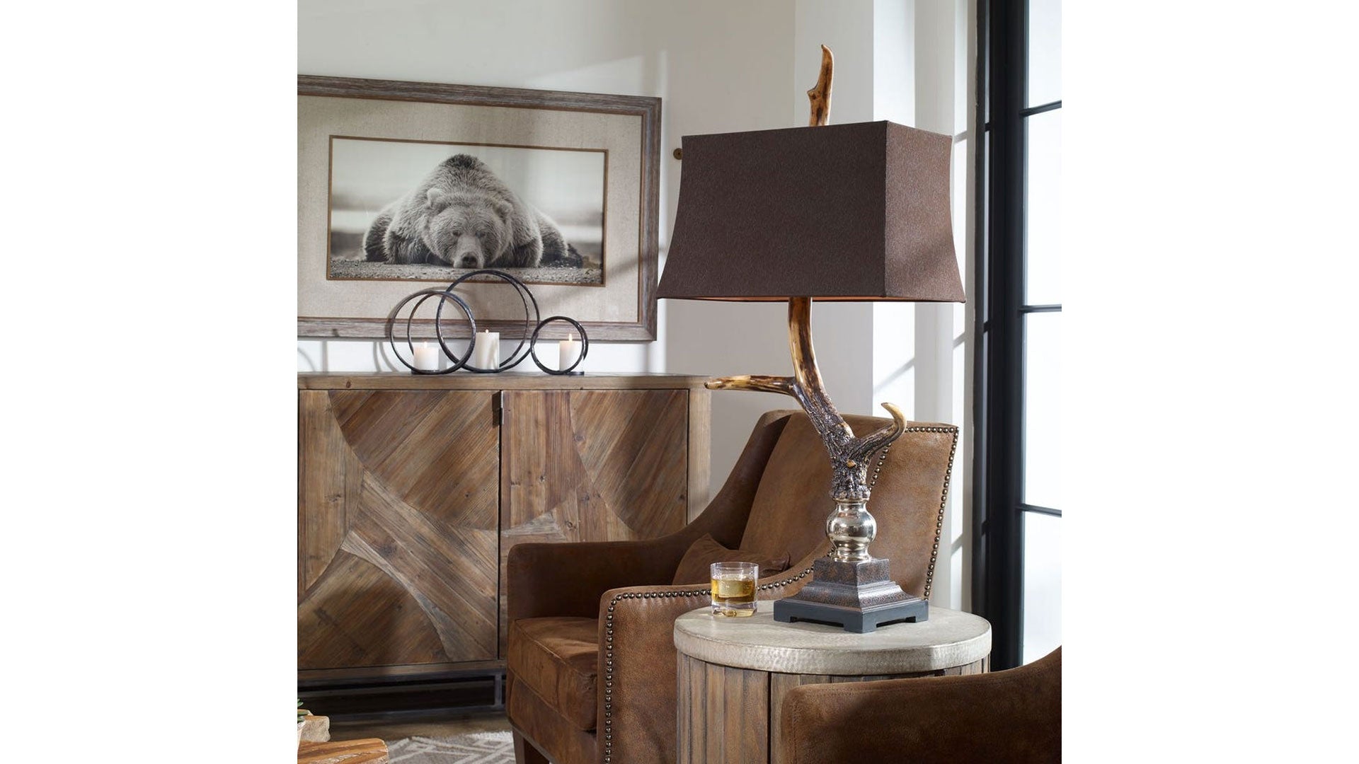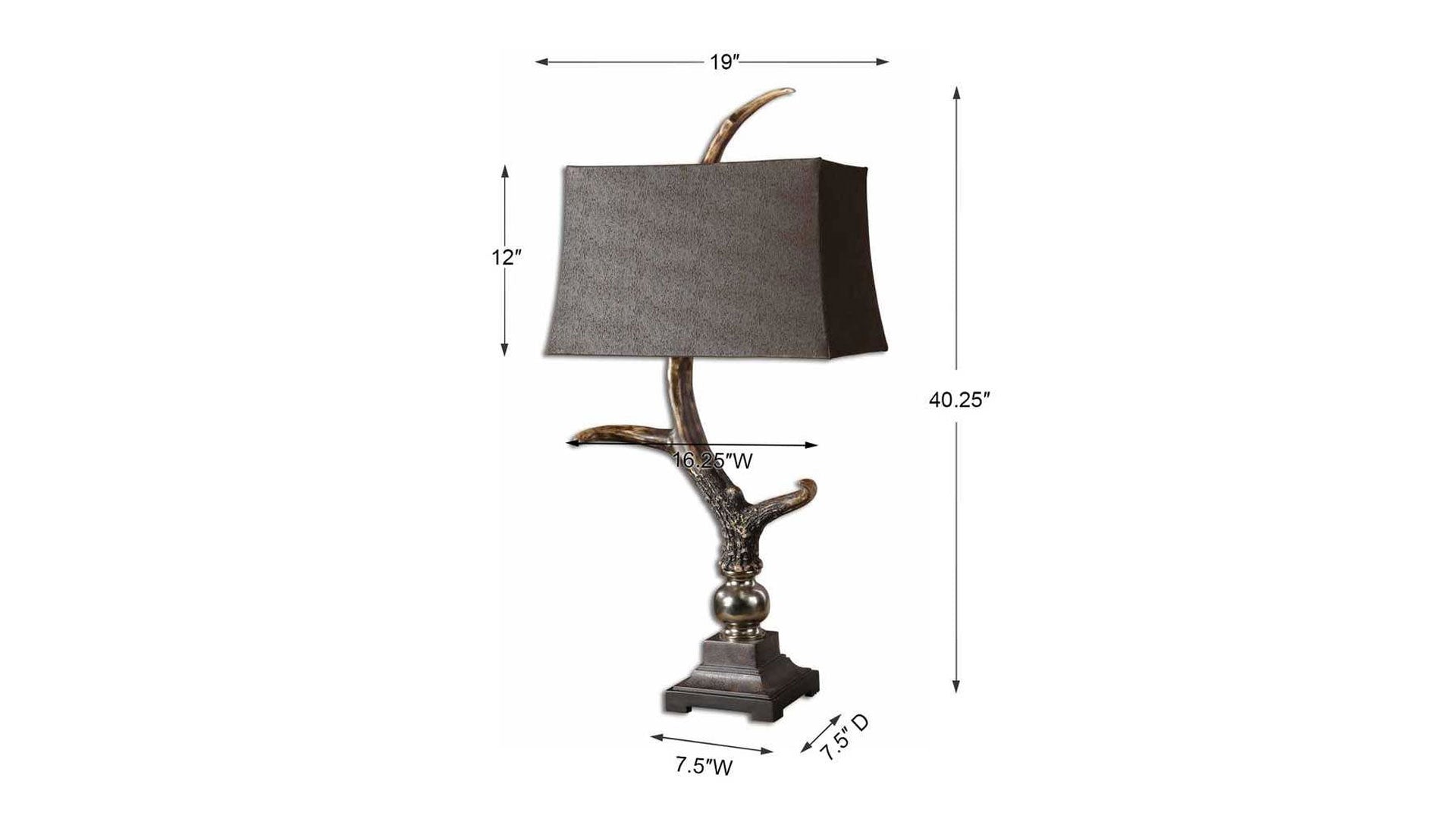 LÁMPARA DE MESA CON CUERNO DE CIERVO Y PANTALLA OSCURA