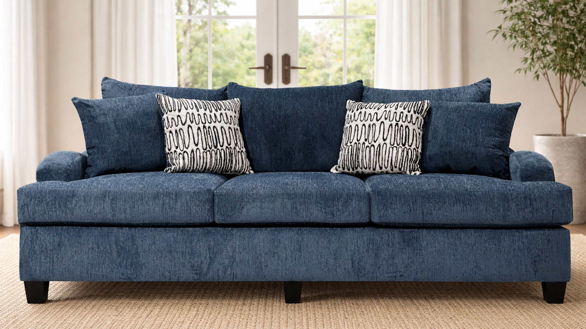 Presentamos la mezcla perfecta de estilo, comodidad y artesanía americana: ¡este impresionante Sofá Azul, exclusivo de Gallery Furniture! Diseñado para ser la pieza central de su sala de estar, este sofá ofrece asientos generosos, comodidad de felpa, y un tono azul vibrante que complementa cualquier decoración. Orgullosamente hecho en los EE.UU., usted está invirtiendo en una pieza construida con atención al detalle y materiales duraderos que resisten la prueba del tiempo. Tanto si recibe invitados como si disfruta de una velada tranquila, este sofá es el lugar ideal para relajarse.