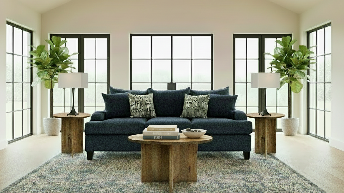 La experiencia de confort y calidad: ¡El sofá azul Made in USA en Gallery Furniture!