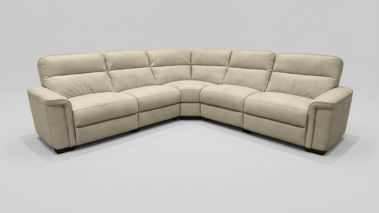 Seccional reclinable eléctrico de 5 piezas Syracuse gris porcelana P2 cuero de grano superior