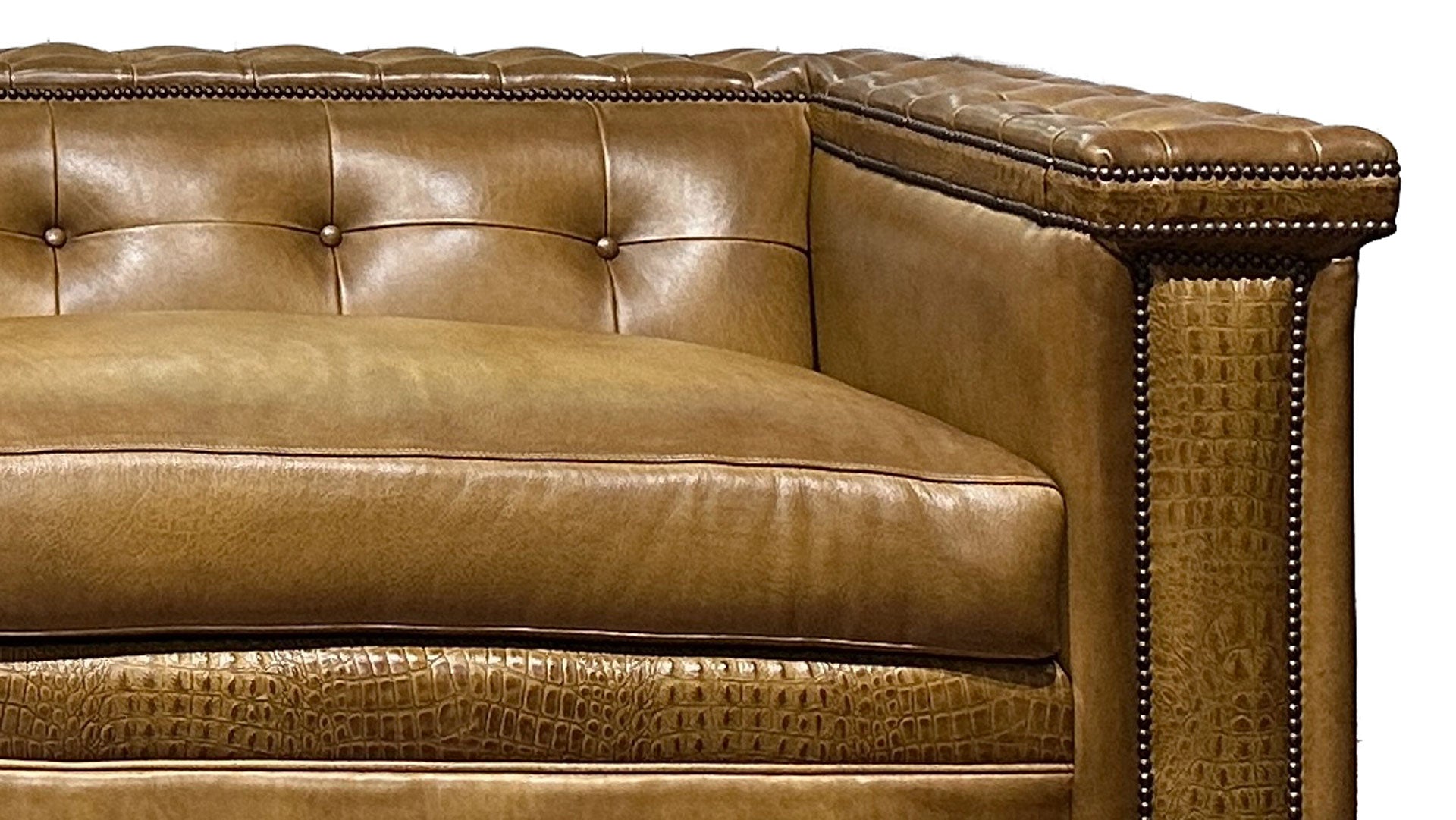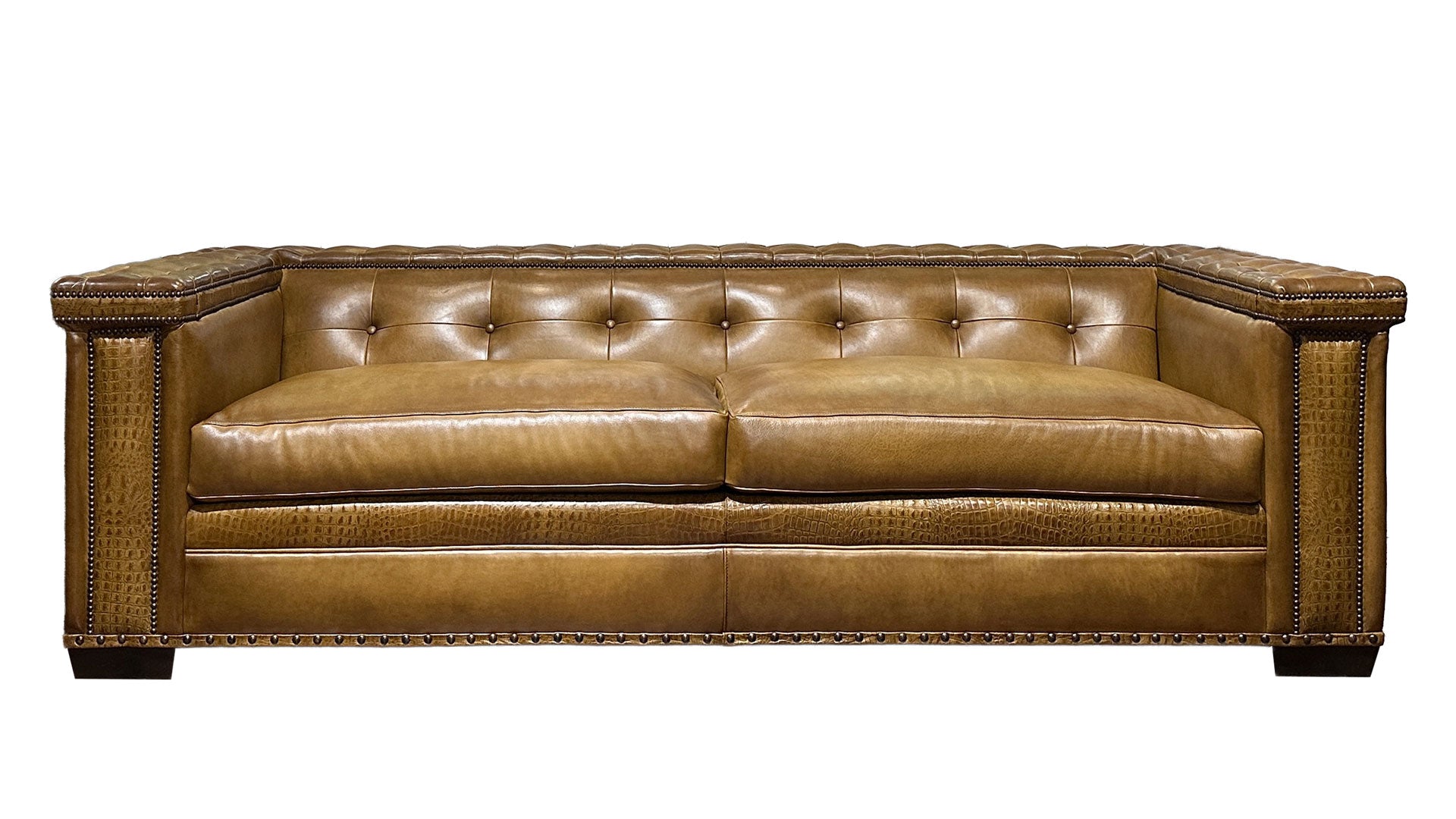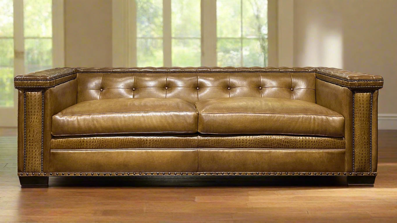 Sofá Bob Timberlake Bark Burnish 100 % cuero - Respaldo capitoné - Hecho a mano - Fabricado en EE. UU.