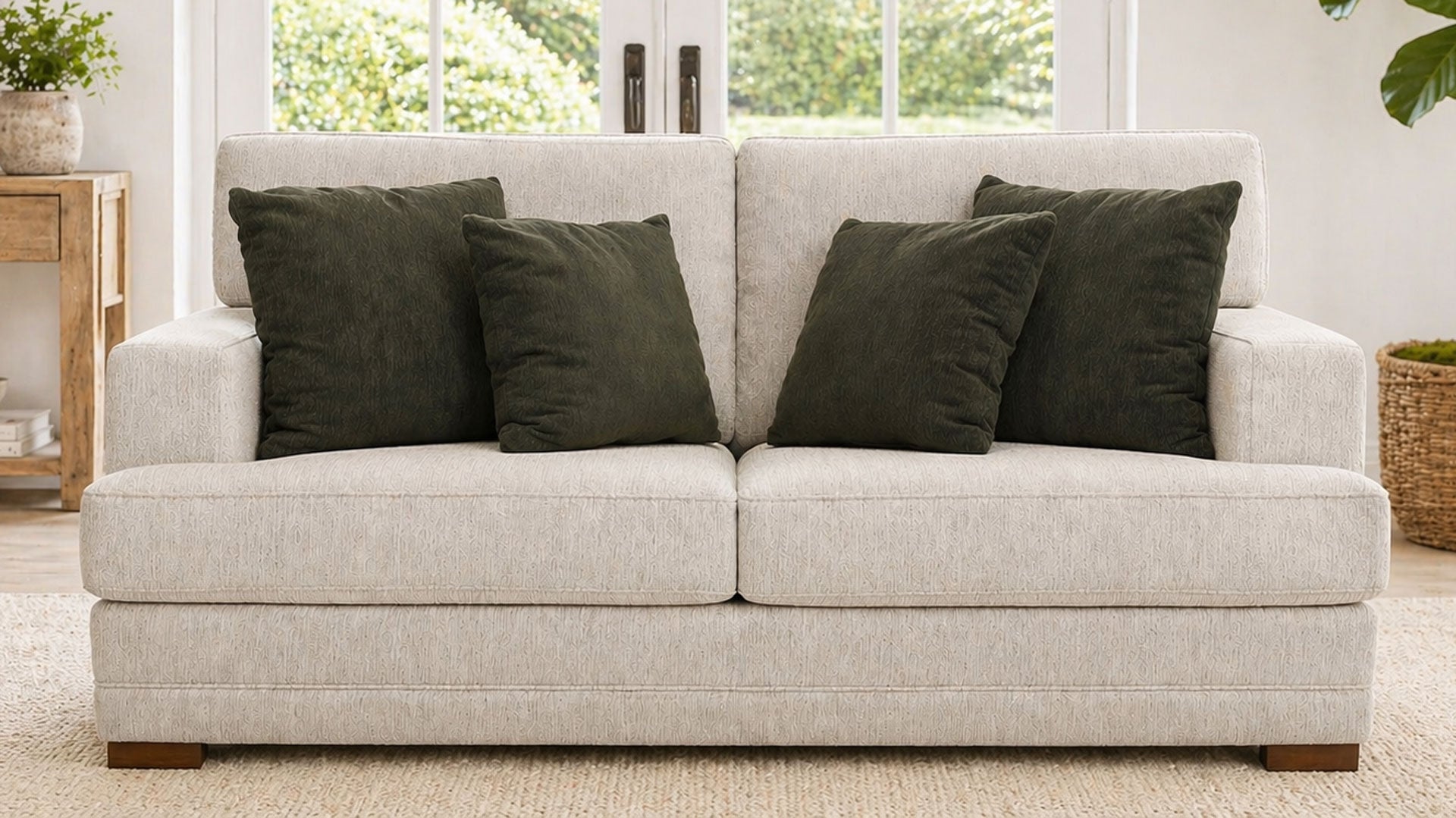 Sofá de dos plazas «Tweed Oatmeal» de Mayo | Sofá fabricado en EE. UU. | Gallery Furniture